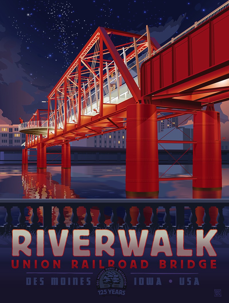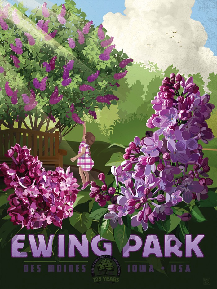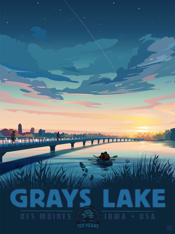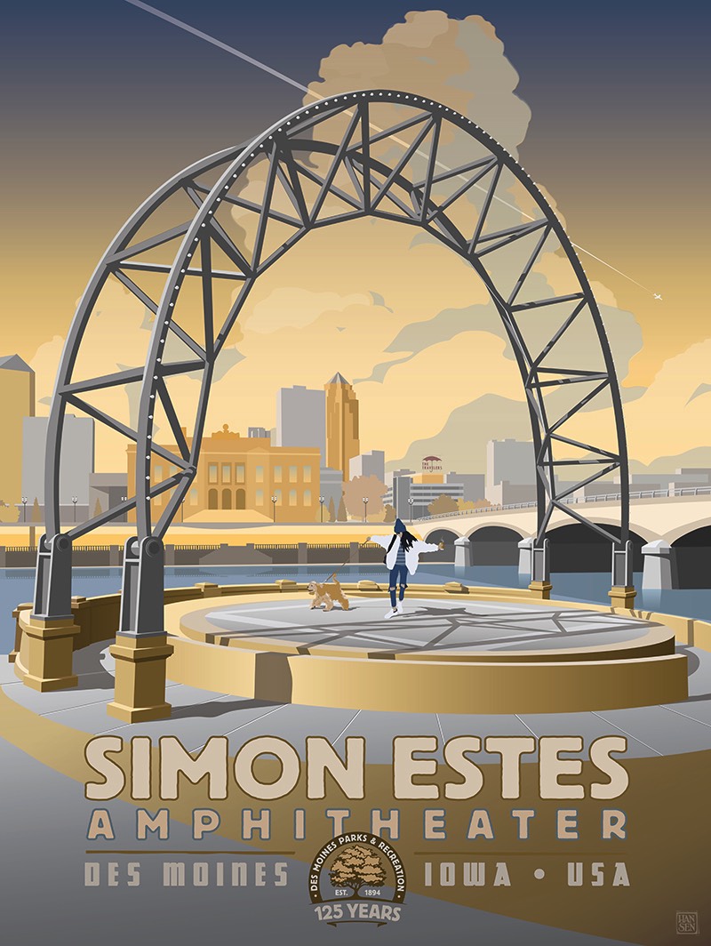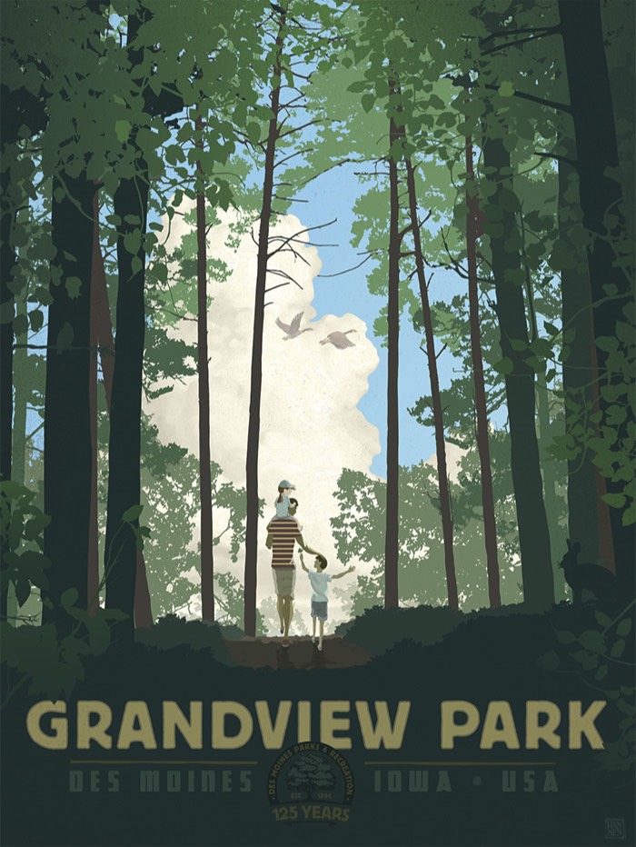 Hansen Galleries is pleased to be working alongside Friends of Des Moines Parks, celebrating Des Moines Parks & Recreation’s 125th anniversary in 2019 by creating a series of parks related art prints in the vintage travel poster style.